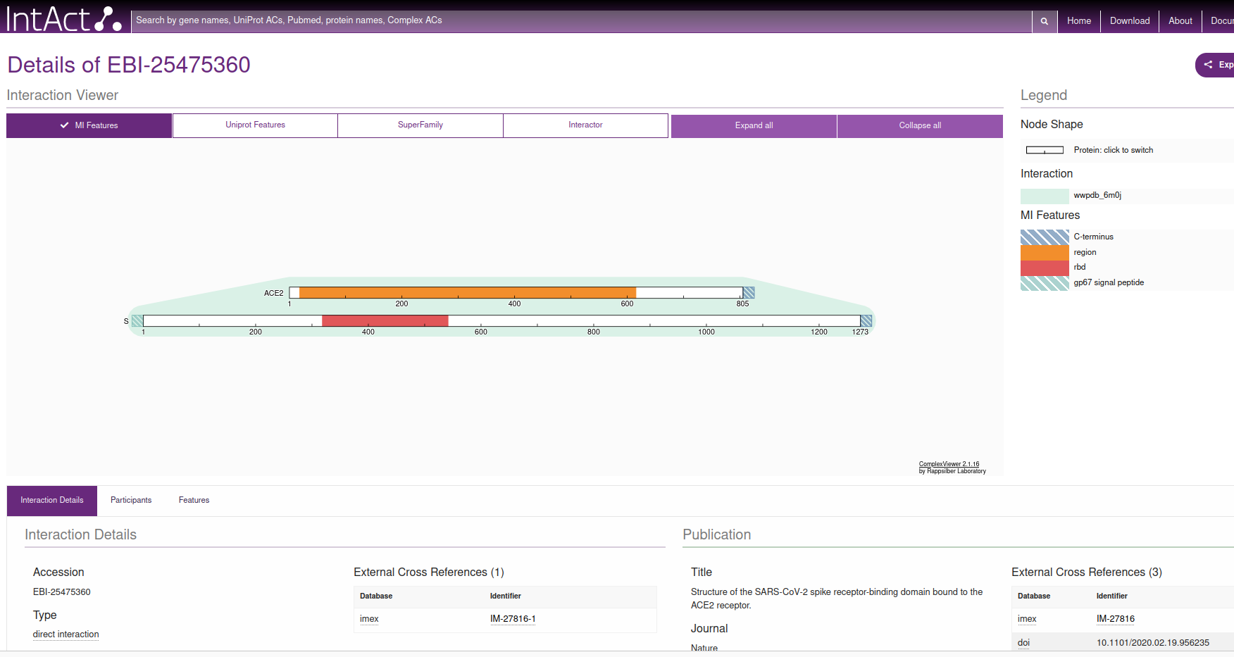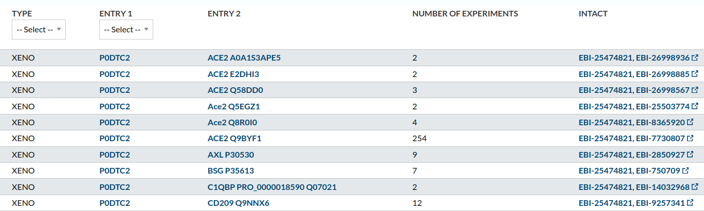 In the section “interactions, we can see how most of the important ones (with more evidence from experiments, at least) refer to the Spike-ACE2 interaction.