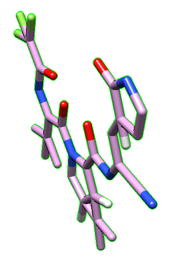 | Nirmatrelvir PDB file obtained from Drugbank | Nirmatrelvir PDB after being fixed by OpenBabel |