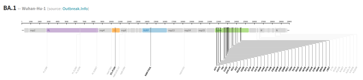 Taking for example the case of the Omicron variant BA.1, we can see that the Spike protein presents astronger variation than the rest of the virus genom. In particular, much more that proteins that are responsible for the replication machinery.