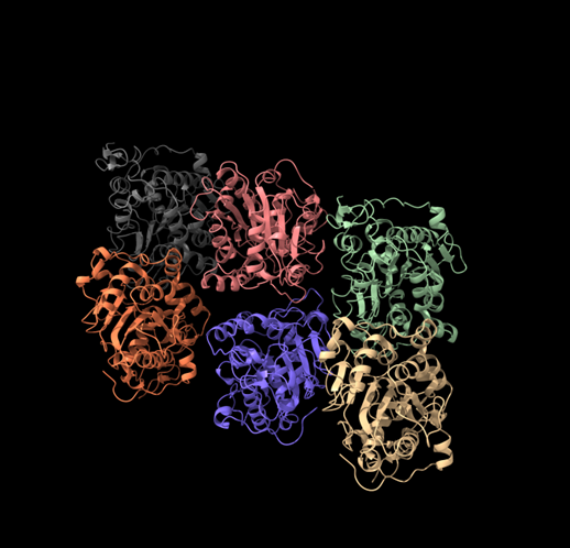 Figura 1. Imatges de la lipasa B amb les seves 6 corresponents cadenes.