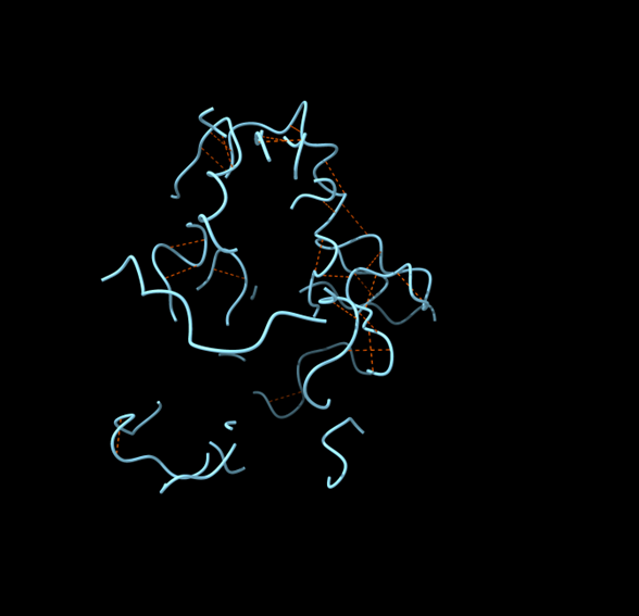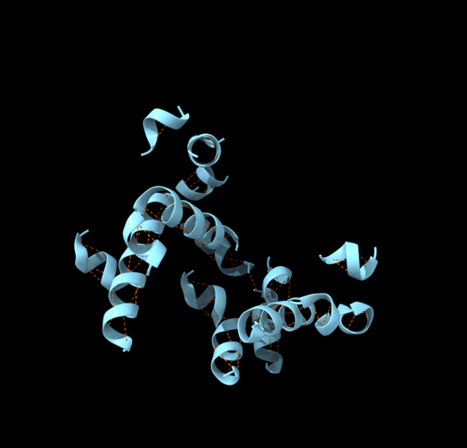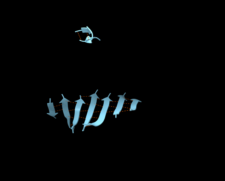 Detecteu les diferents estructures secundàries de la proteïna i determineu-ne el tipus (fulles, hèlix, llaços i les seves diferents variants). Mireu de descriure amb un cert detall els diferents tipus d’interaccions que podeu trobar dins aquestes estructures secundàries (mostreu els ponts d’hidrogen interns d’aquestes estructures secundàries).